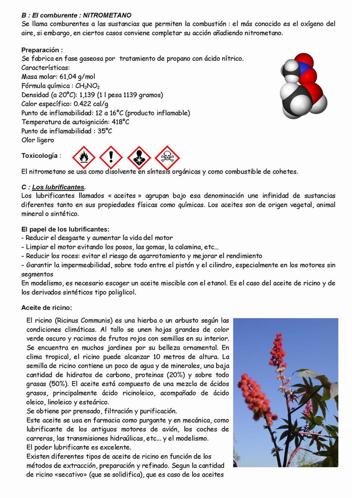 Se llama comburentes a las sustancias que permiten la combustión : el más conocido es el oxígeno del aire, si embargo, en ciertos casos conviene completar su acción añadiendo nitrometano